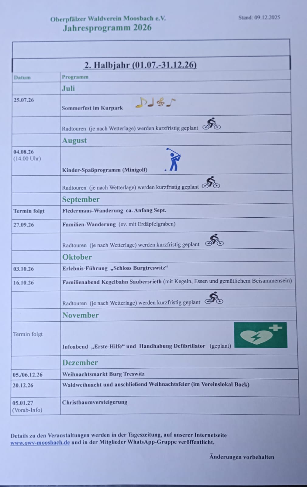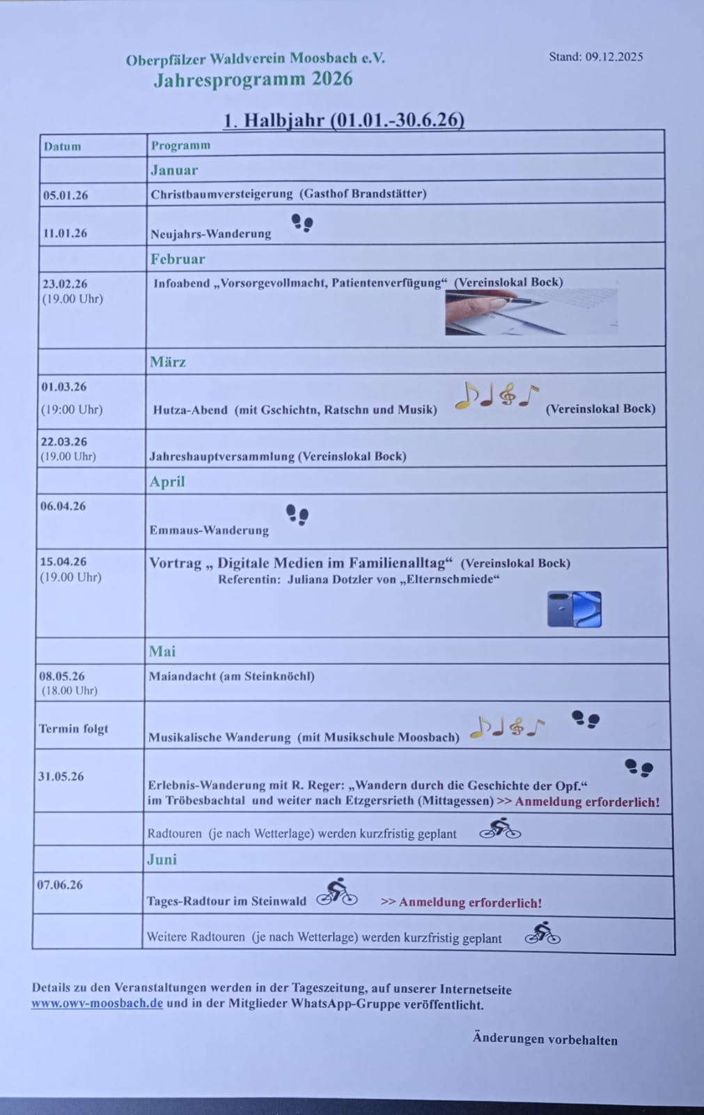 Programm 2026 - OWV-Moosbach